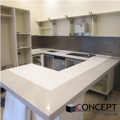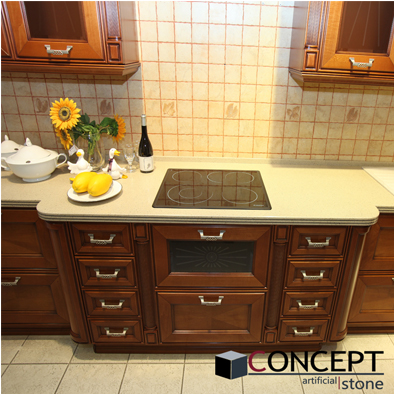 Столешница из искусственного камня ценой гораздо ниже, чем из натурального материала, а преимуществ у нее значительно больше. Яркий, стильный дизайн, эксклюзивность продукта, экологичность, прочность и долговечность — это далеко не полный список достоинств столешницы из камня. Цена изделия вполне отвечает его качеству, особенно если учесть, что срок его службы составляет около двадцати лет.