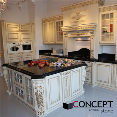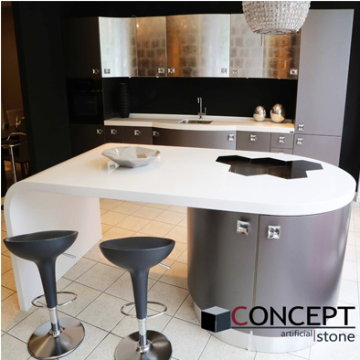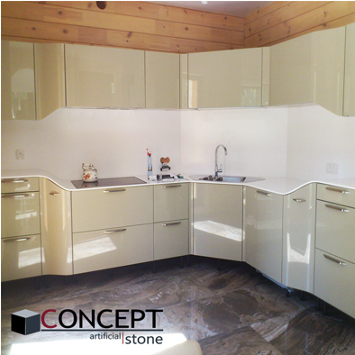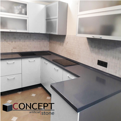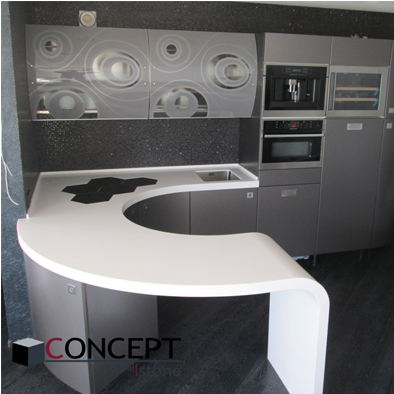 Наша компания занимается изготовлением столешниц из искусственного камня, начиная от момента создания дизайна будущего изделия и заканчивая его монтажом. У нас вы можете купить столешницу из камня или заказать продукт по индивидуальному эскизу.